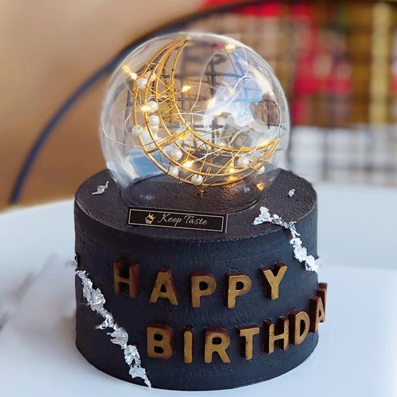 告白透明玻璃球蛋糕装饰玫瑰串灯水晶罩珍珠月亮烘焙生日插件摆件