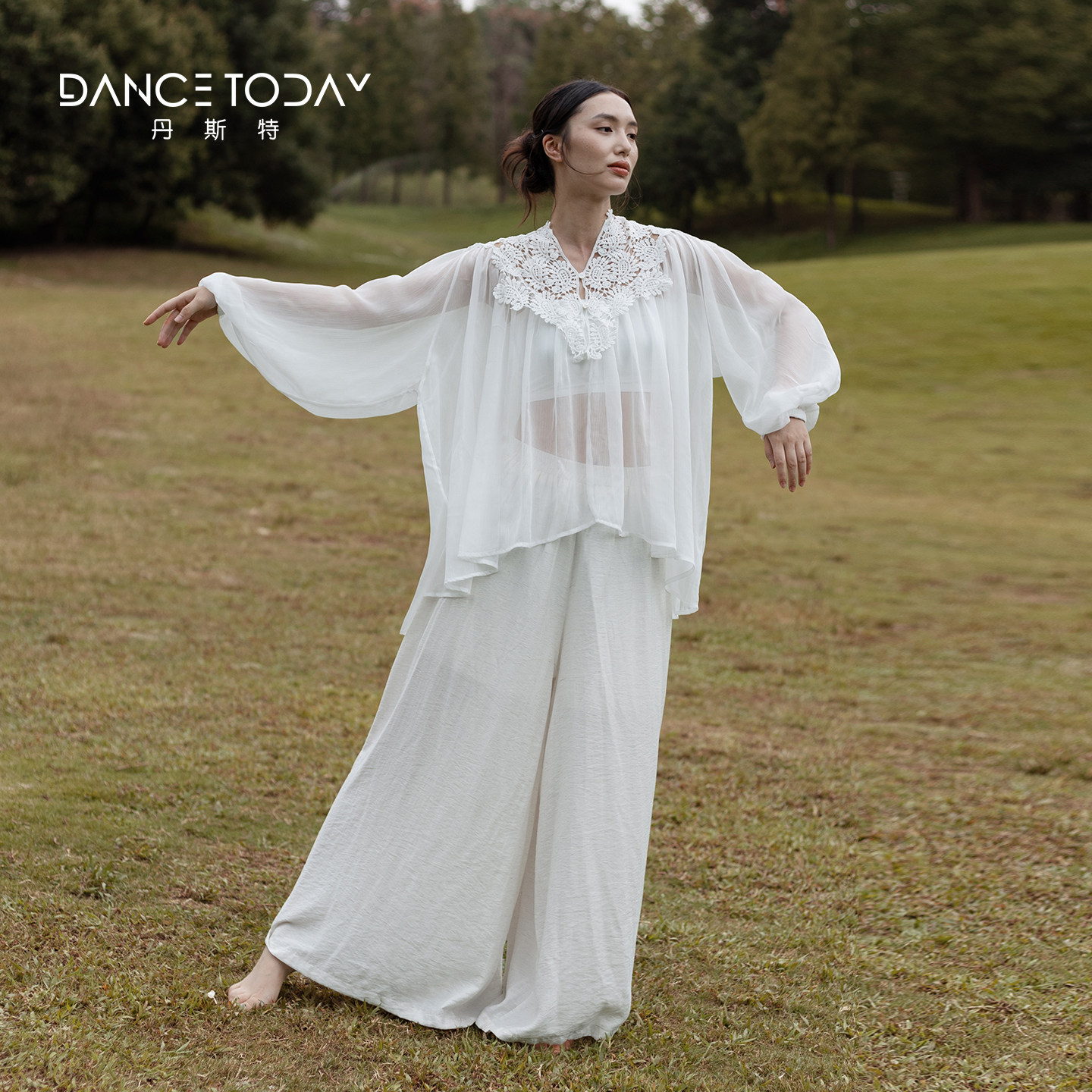 dancetoday现代舞蹈服衬衫套装女长袖上衣白色蕾丝罩衫古典练功服
