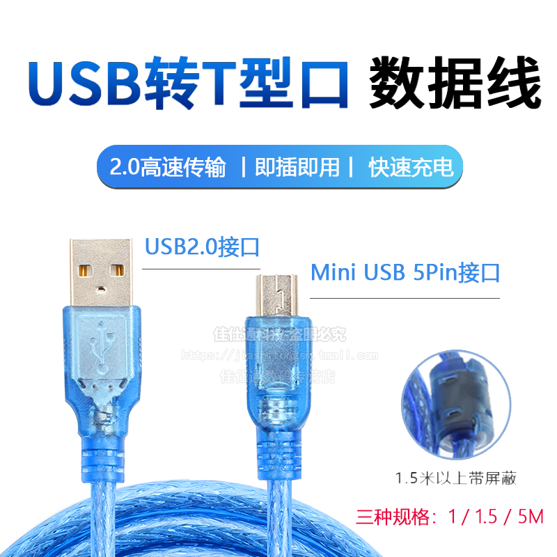 usb数据线T型口平板MP3硬盘相机汽车导航数据线手机充电线串口线