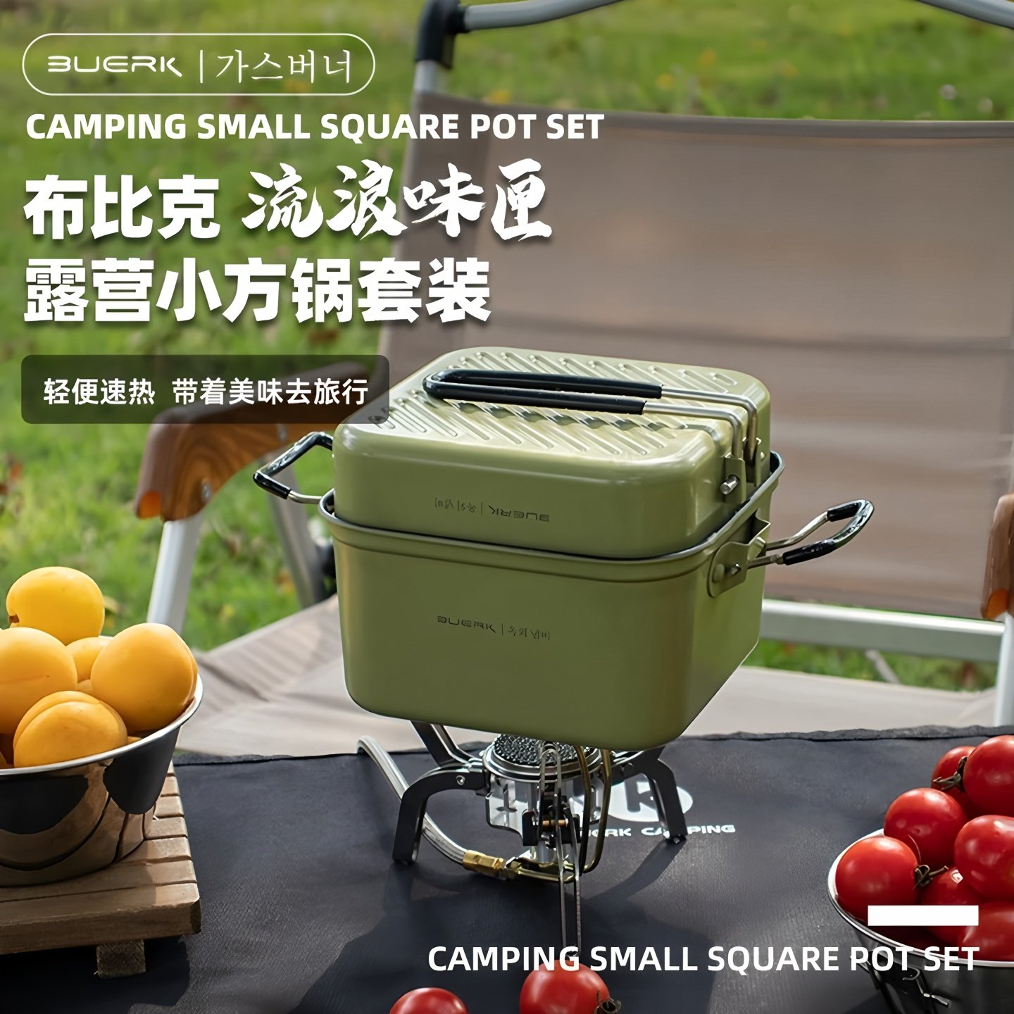 BUERK布比克户外露营方形锅折叠便携不锈钢饭盒煎盘煮锅户外套锅