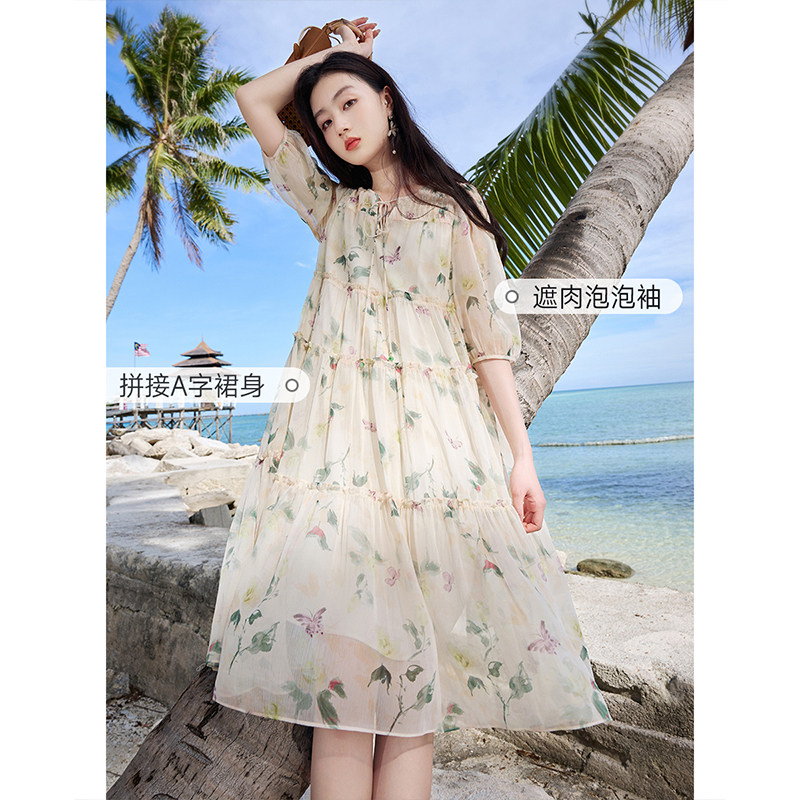 香影海边度假花卉雪纺连衣裙女夏2025新款裙子超仙a字日落沙滩裙