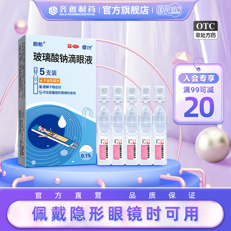 润怡 玻璃酸钠滴眼液5支/盒 人工泪液干眼症眼药水齐鲁旗舰店正品