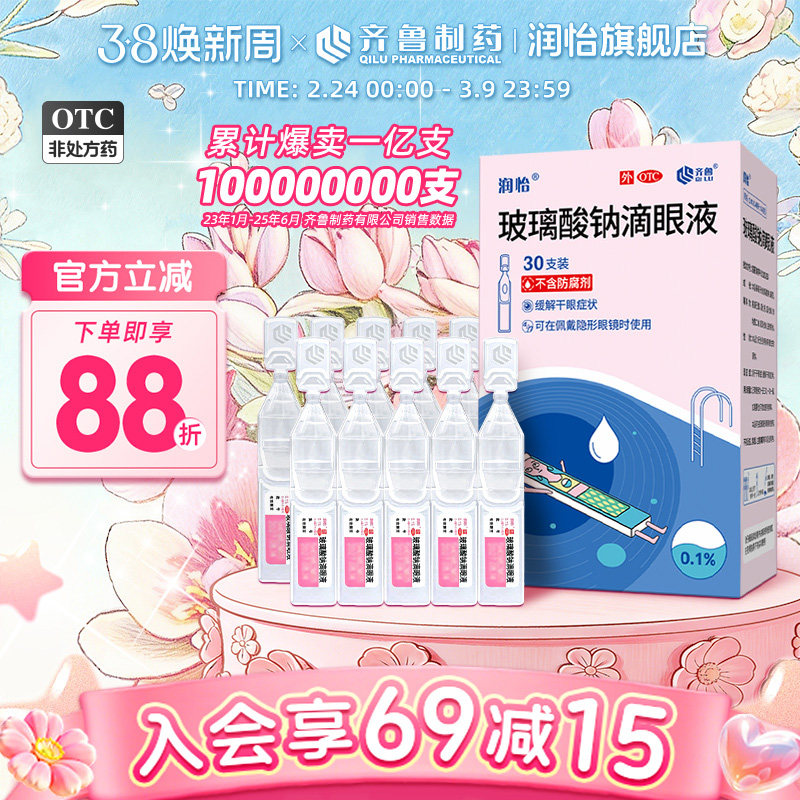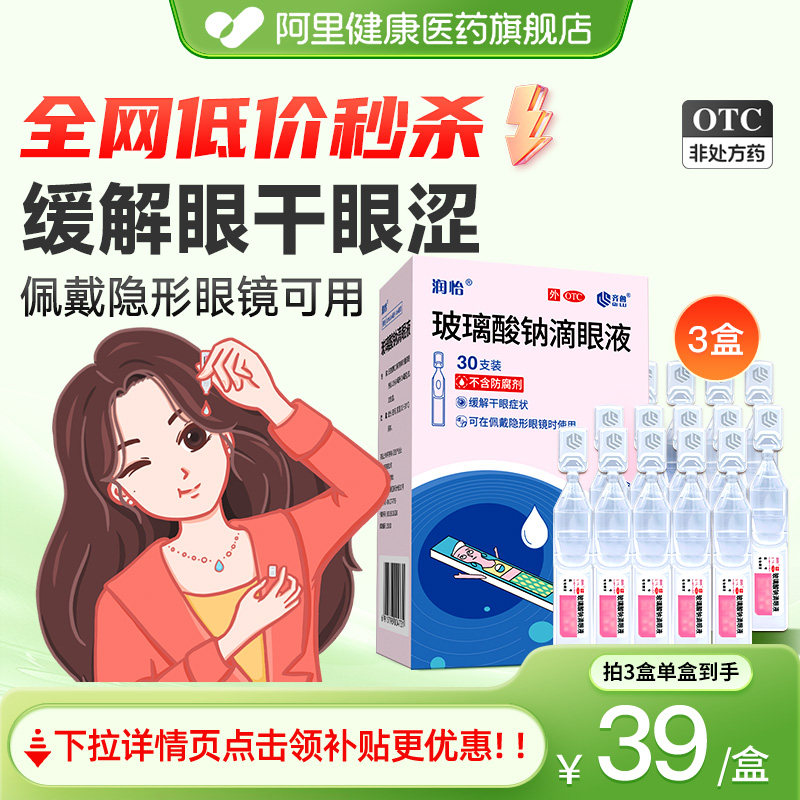 润怡玻璃酸钠滴眼液人工泪液干眼症缓解隐形眼镜眼药水旗舰店官方