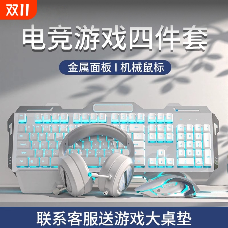 金属无线键盘鼠标套装耳机三件套电竞游戏静音有线机械人专用键鼠