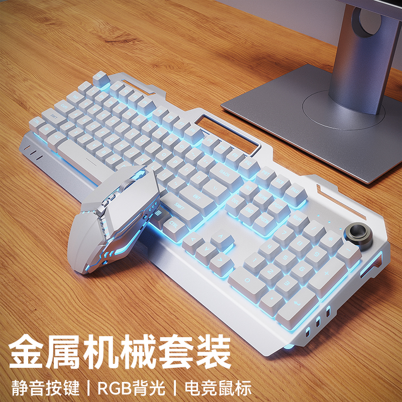 金属机械手感键盘鼠标套装有线电竞游戏专用台式电脑无线垫键鼠套