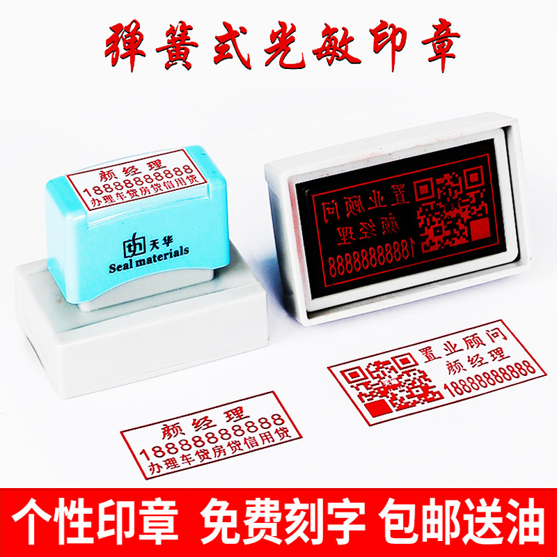 刻张印章定刻长方形光敏刻章定制名字姓名个人二维码刻字章印制作