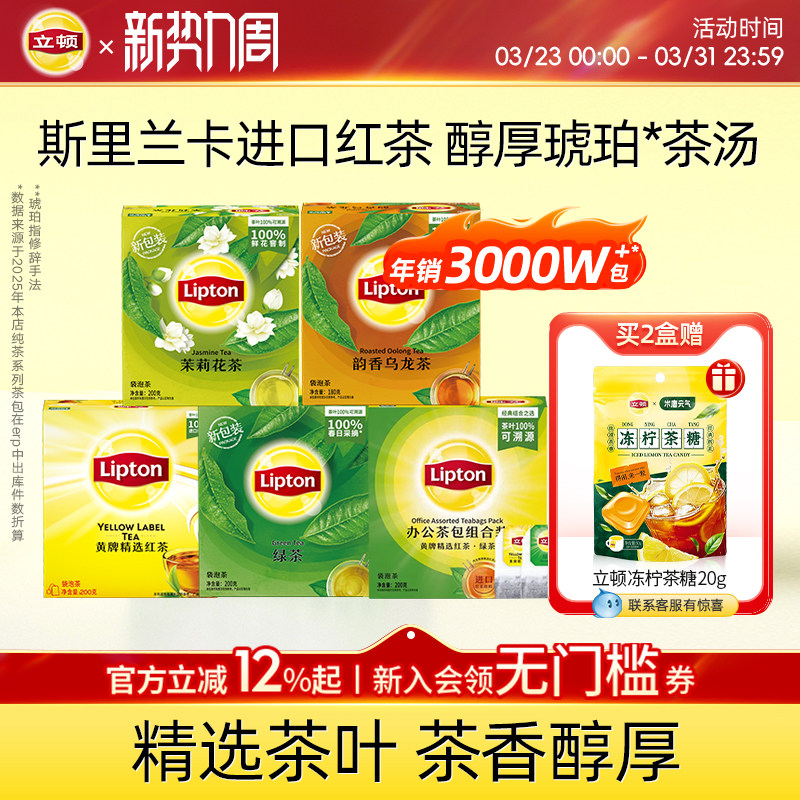 立顿红茶茉莉花茶绿茶乌龙茶茶叶茶包100包袋泡茶独立小包装袋