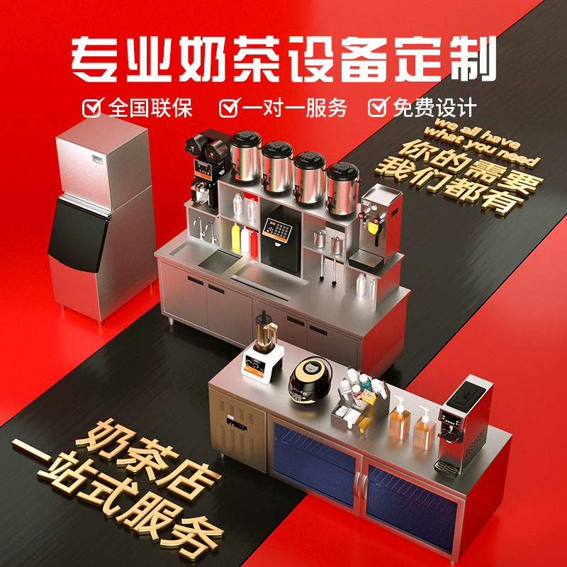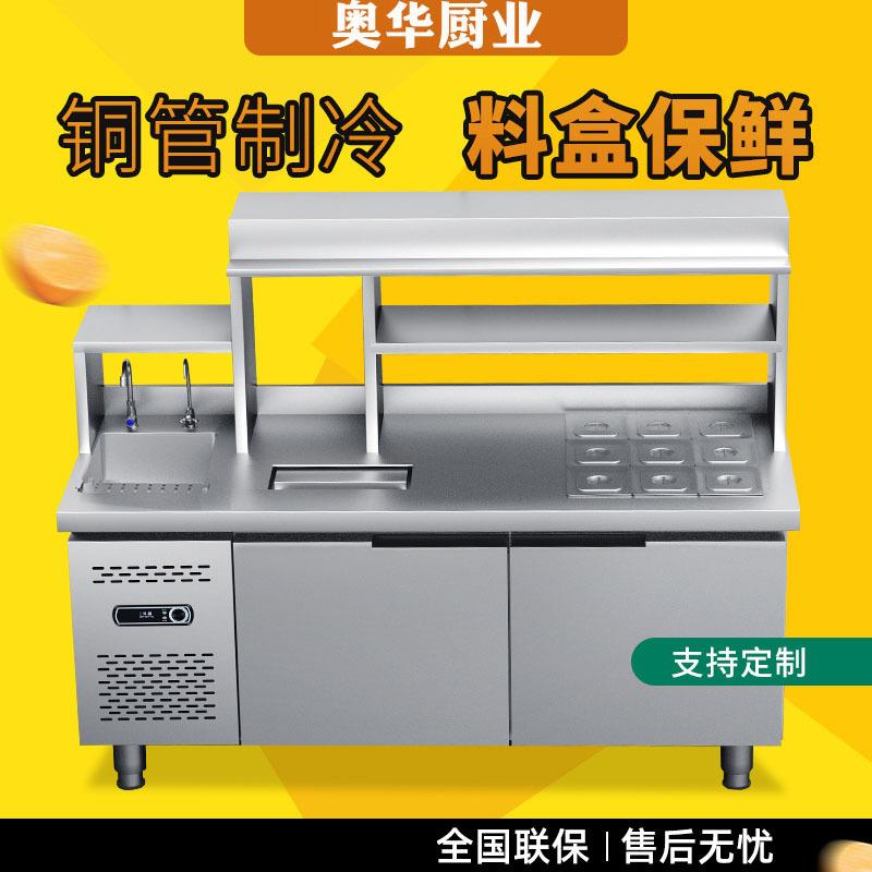 奶茶操作台水吧台饮品店冷藏工作台商用创业型奶茶店设备全套用品