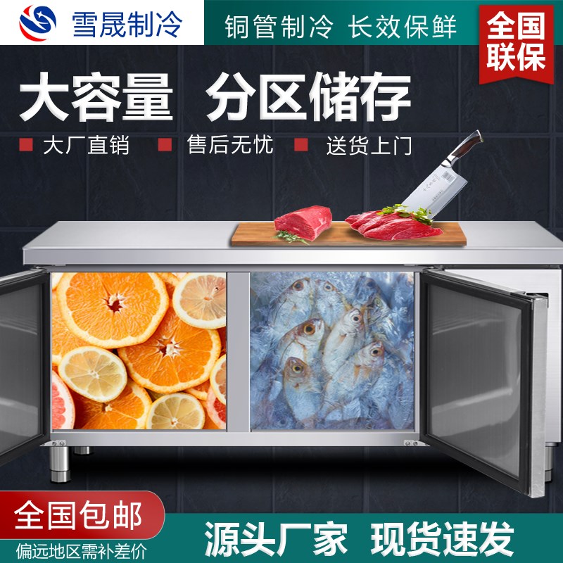 雪花冷藏工作台商用平冷柜操作台冰柜厨房奶茶店冷冻保鲜双温冰柜