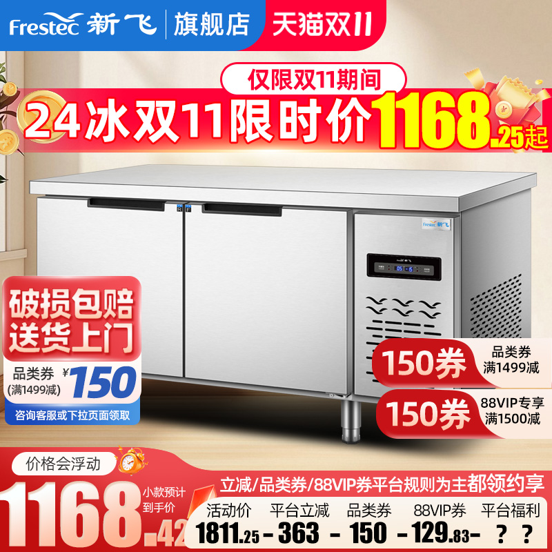 新飞全铜管冷藏工作台厨房冷冻商用冰箱平冷冰柜水吧台奶茶操作台