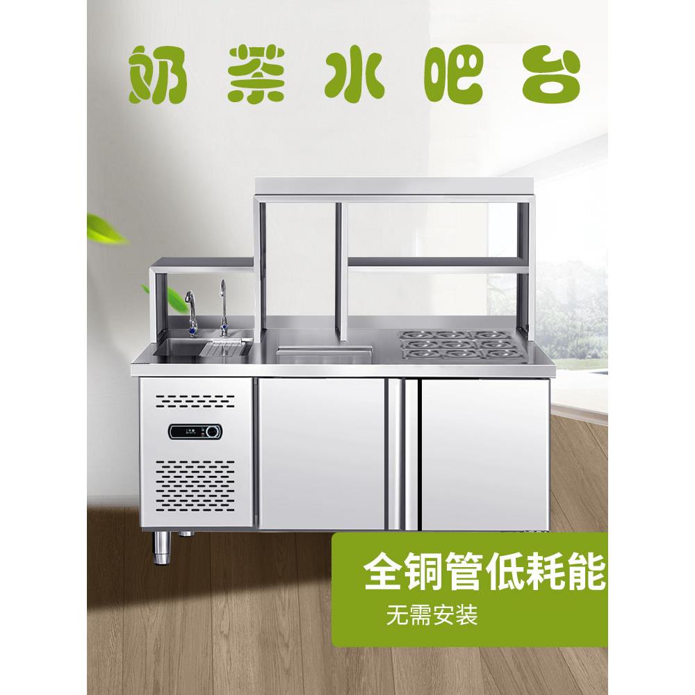 奶茶操作台冷藏柜奶茶店设备水吧台全套商用不锈钢保鲜水吧工作台