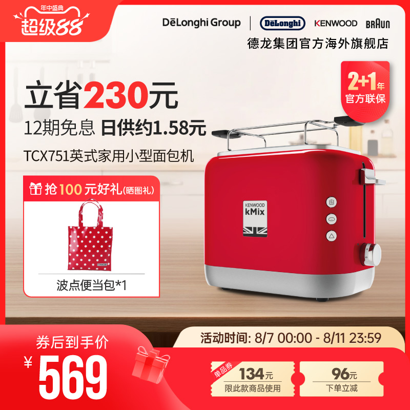 KENWOOD/凯伍德多士炉烤面包家用烘烤架早餐机土司吐司机TCX751