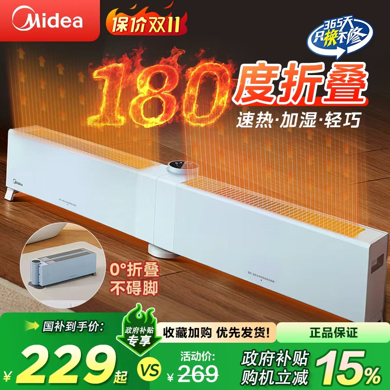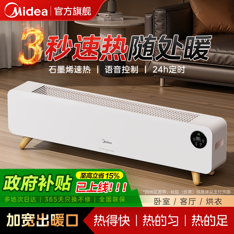 [多地次日达]美的踢脚线取暖器石墨烯暖风机语音加湿地暖电暖气