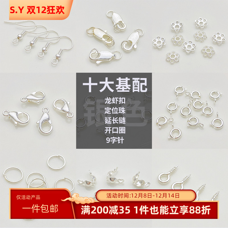 保色银色串珠手工diy项链开口圈弹簧扣龙虾扣隔珠材料羊角钉配件