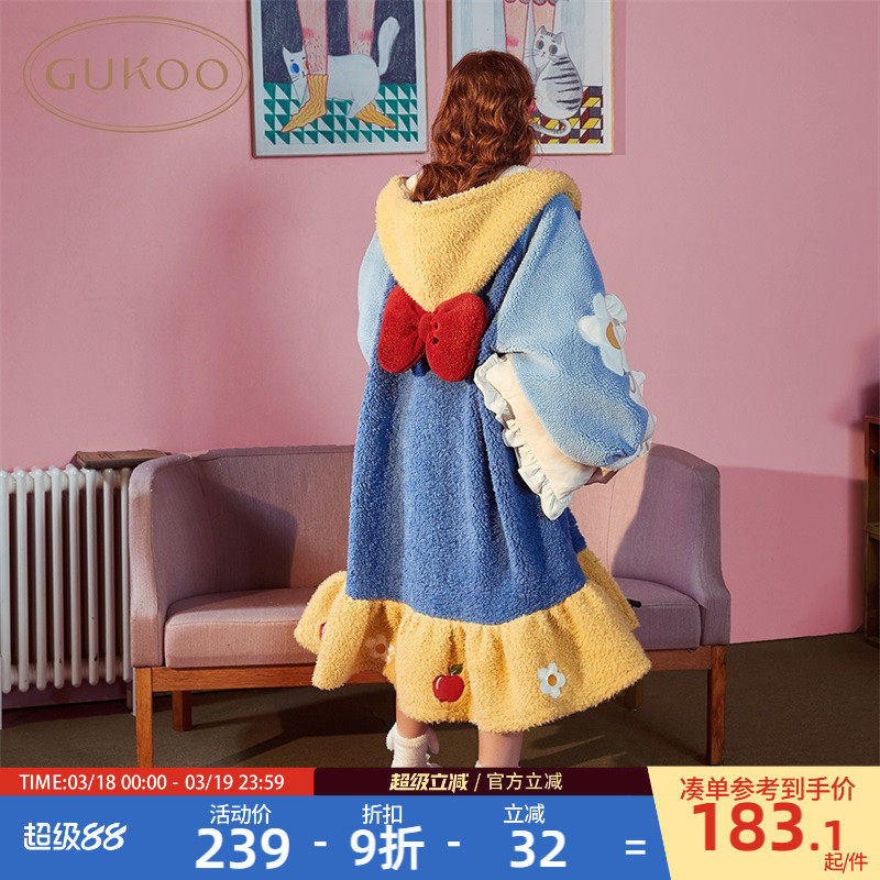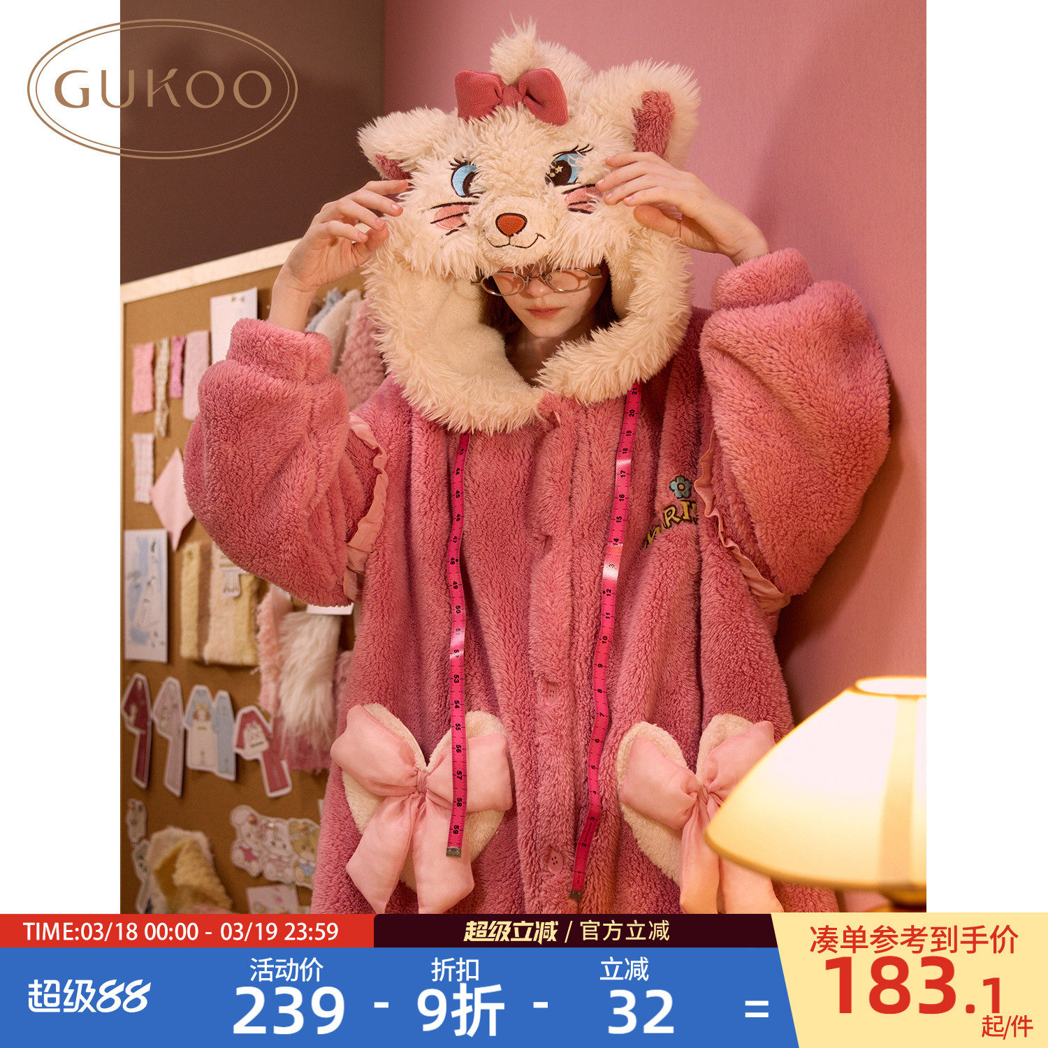 Gukoo/果壳睡袍女冬季迪士尼珊瑚绒睡衣新款加绒可爱女士家居服D