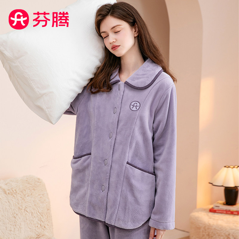 芬腾可安珊瑚绒睡衣女士加厚加绒保暖春秋冬季法兰绒套装2026新款
