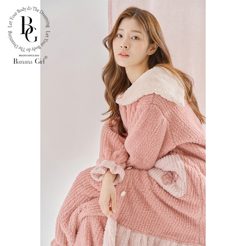 Bananagirl珊瑚绒睡衣女秋冬加厚加绒可爱卡通女士长袖可外穿套装