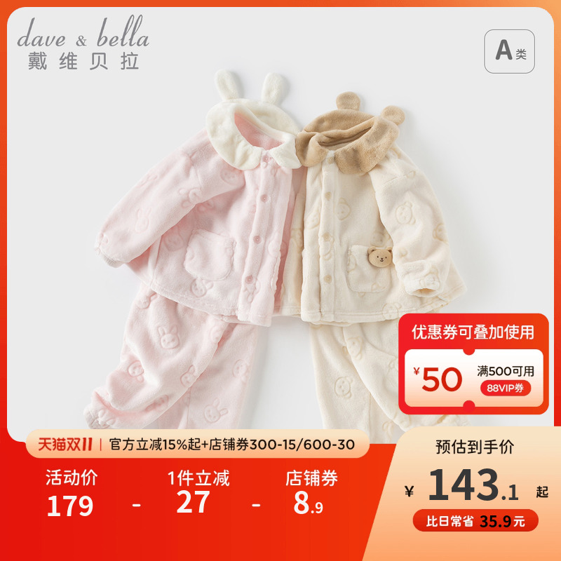戴维贝拉女童家居服套装珊瑚绒睡衣睡裤女宝冬季新款男童儿童保暖