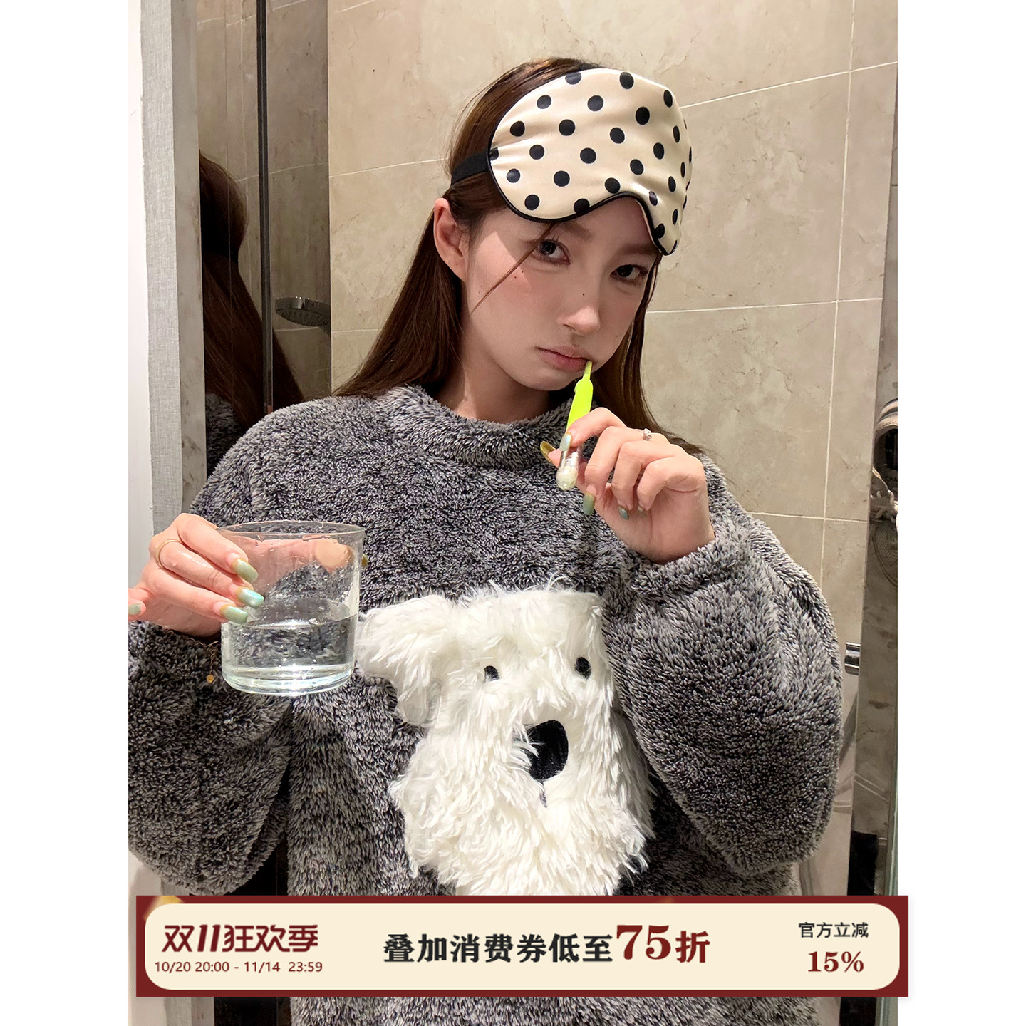 JoyceBra可爱毛绒小狗珊瑚绒睡衣女秋冬季加厚防寒圆领家居服套装