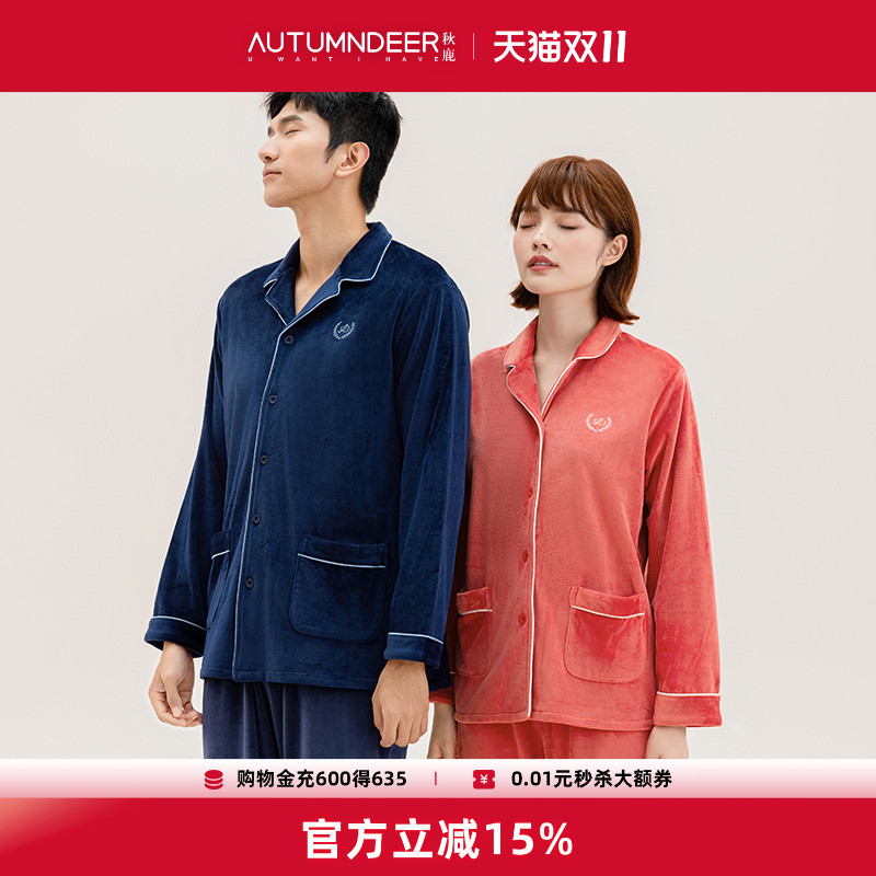 秋鹿冬季海岛绒男士家居服女款情侣加厚加绒毛绒珊瑚绒睡衣女冬款