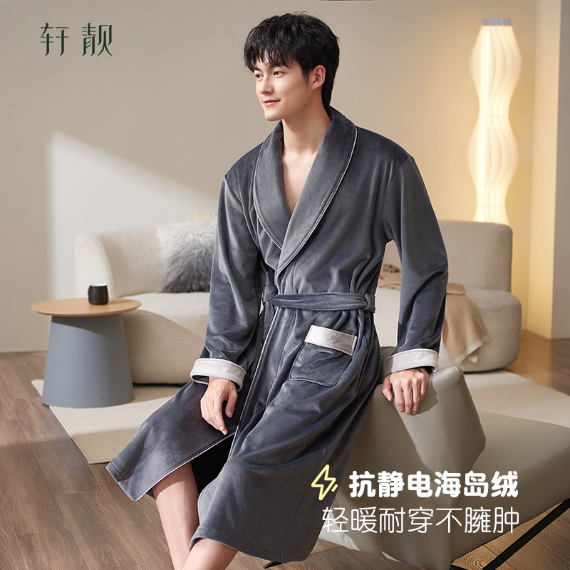 轩靓睡袍男士冬天加厚加绒珊瑚绒睡衣海岛绒大码家居服春秋季浴袍