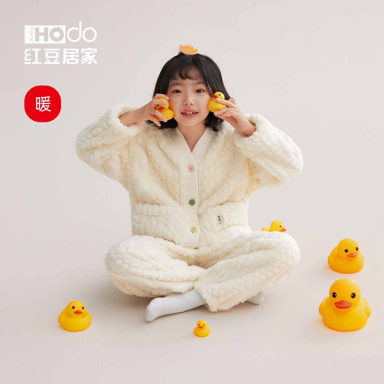 红豆【暖暖绒】儿童珊瑚绒睡衣女中大童保暖女孩亲子加厚家居服冬