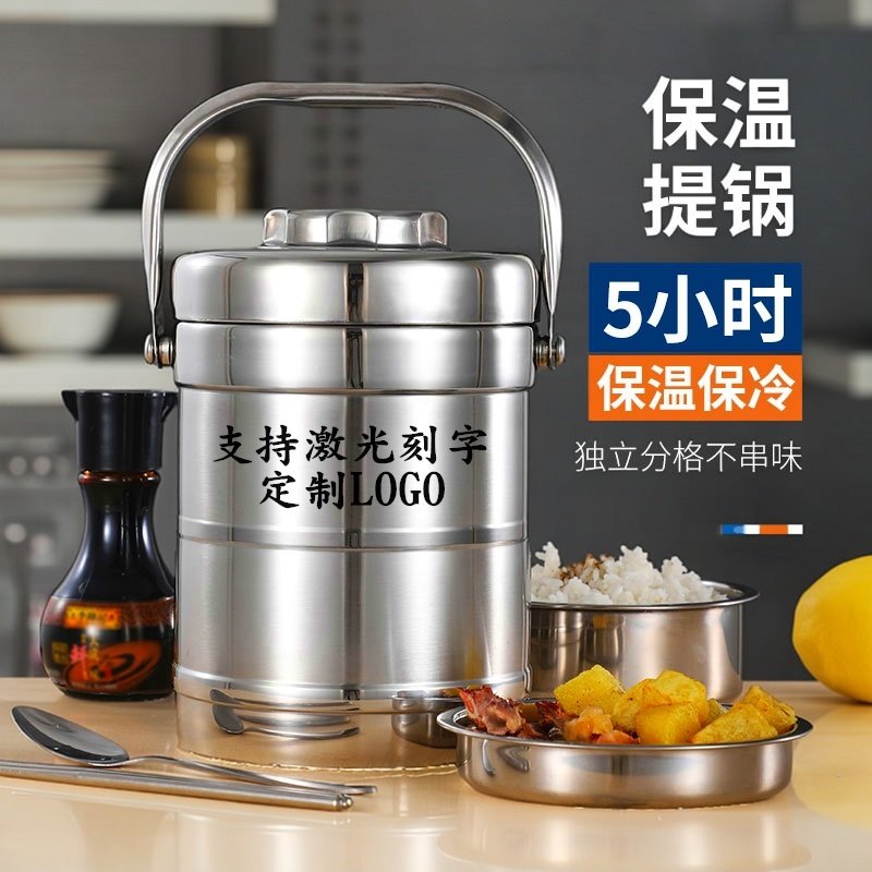 大容量不锈钢双层提锅餐盒保温桶3层保温饭盒便当盒防漏密封提锅