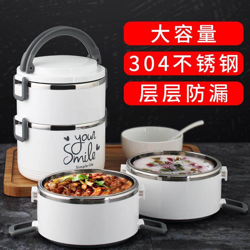 304不锈钢保温饭盒加厚保温桶大容量成人便当盒3层真空手提锅饭桶