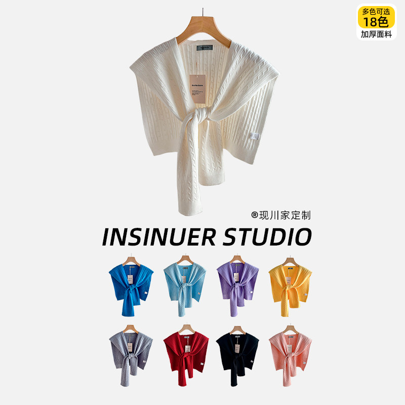 INSINUER纯色空调房搭肩小披肩斗篷外搭网红针织坎肩毛线围巾春秋