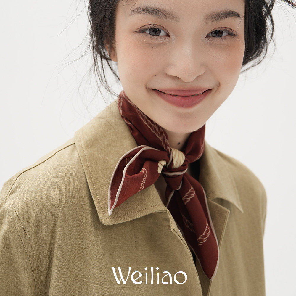 Weiliao 贝壳小方巾真丝丝巾春天桑蚕丝红蓝系脖复古高级感围脖