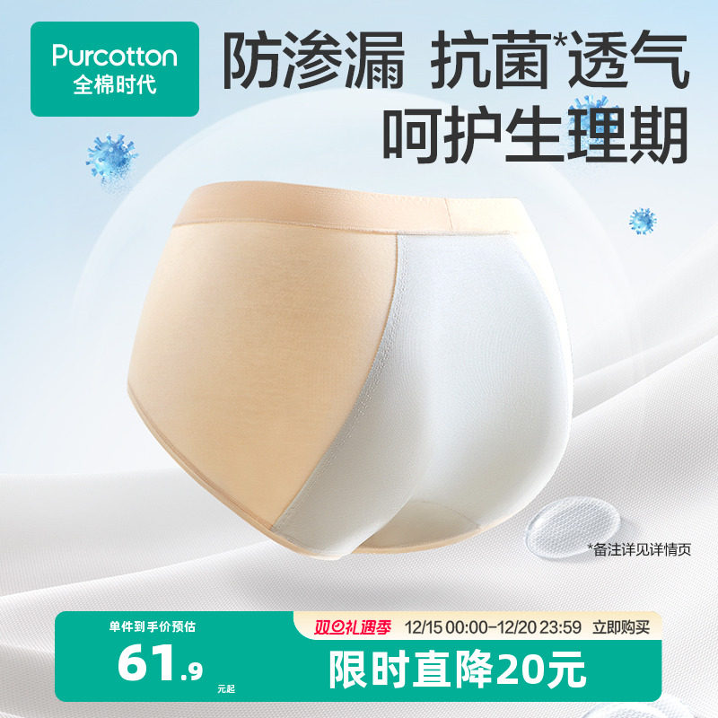 全棉时代女士内裤生理裤月经期内裤防侧漏女生纯棉三角裤高腰新款