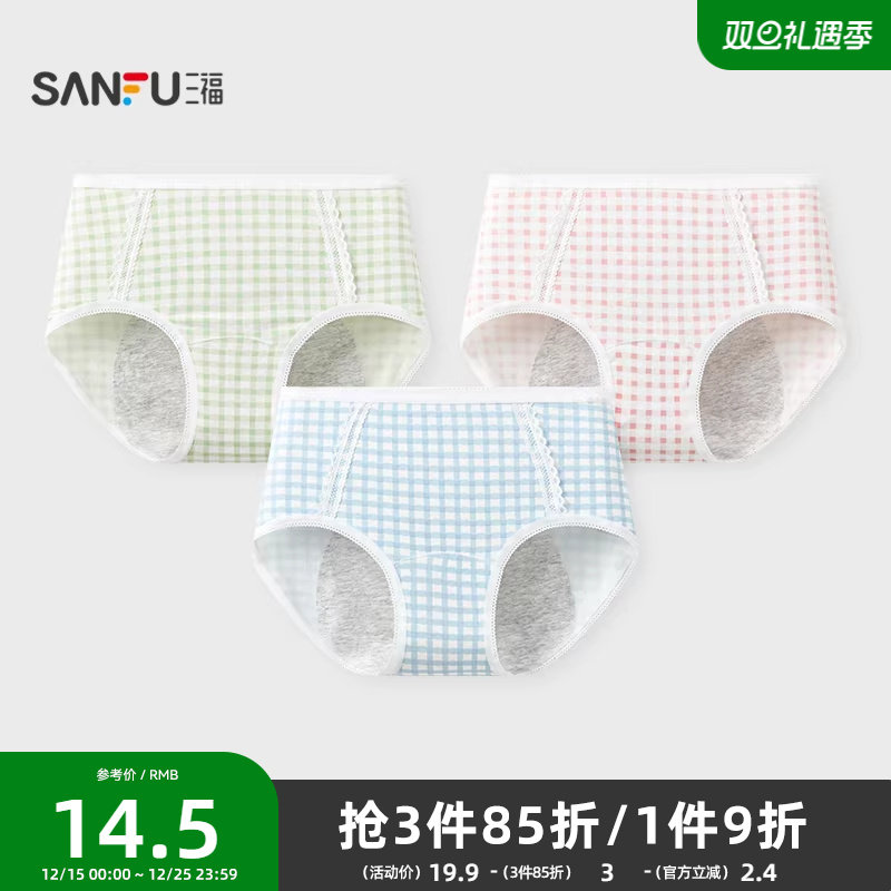 芬腾生理期纯棉内裤发育期初中学生女孩月经期防漏姨妈例假期专用