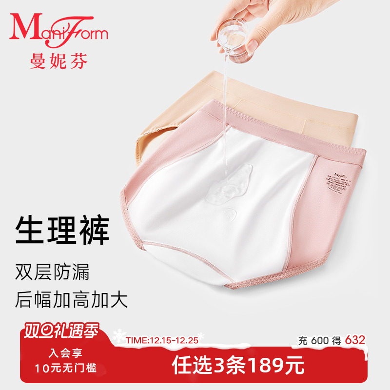 安心经期生理内裤 防漏舒适一整天A类棉亲肤透气抑菌加长裆三角裤