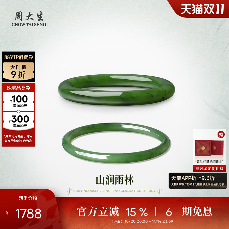周大生和田碧玉手镯女翠浓玉镯子细镯可选生日礼物送女朋友高级感