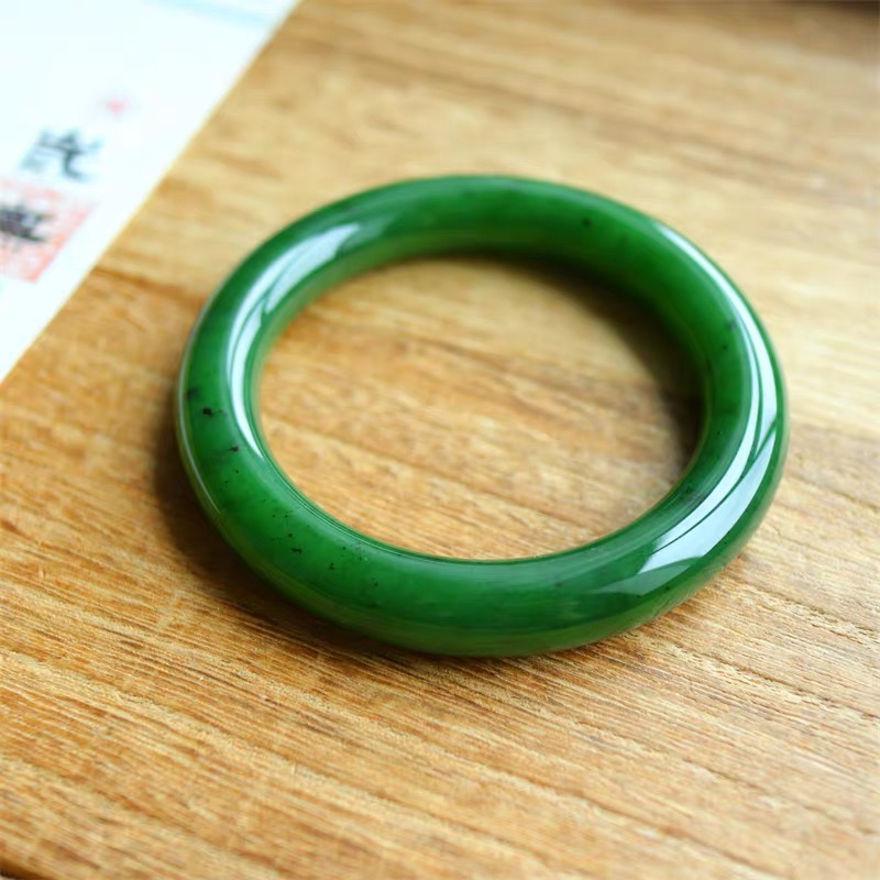 景禾和田玉碧玉手镯女款俄罗斯老坑俄料菠菜绿玉镯子天然玉石圆镯