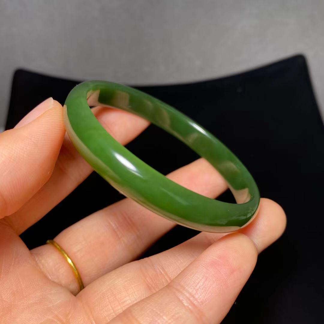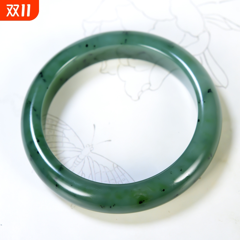 超值天然俄罗斯碧玉乌兰海圆条手镯女款玉镯细条女款碧玉镯子饰品