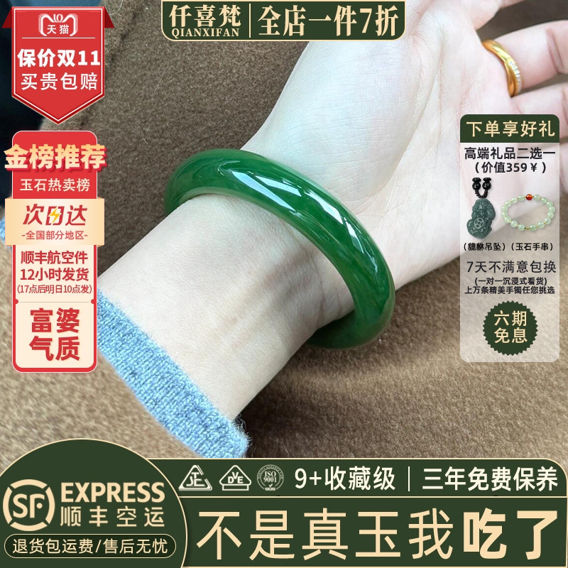 正品新疆和田玉手镯碧玉镯子真玉石镯女友妈妈礼物节日国风气质镯