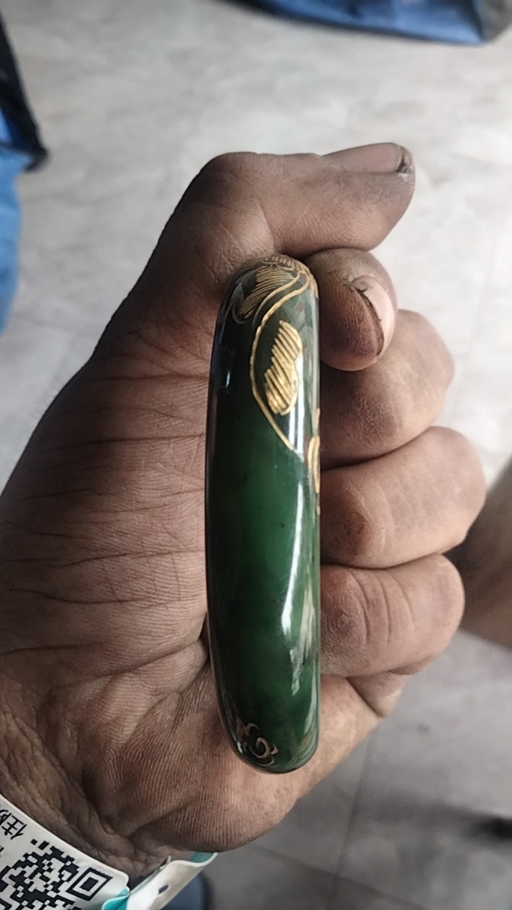 和田玉俄料碧玉镯子边角断面的肉质很紧致有纹可以出些手牌做半镯
