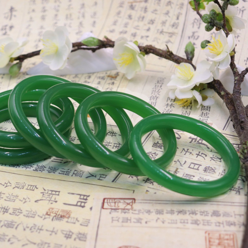 外蒙料手镯圆手镯外蒙碧玉镯子细条绿色条女款玉手镯手链厂家包邮