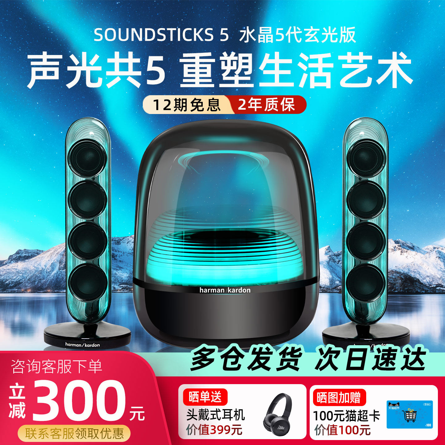 【旗舰新品】哈曼卡顿Soundsticks 5水晶五玄光黑蓝牙音响音箱284