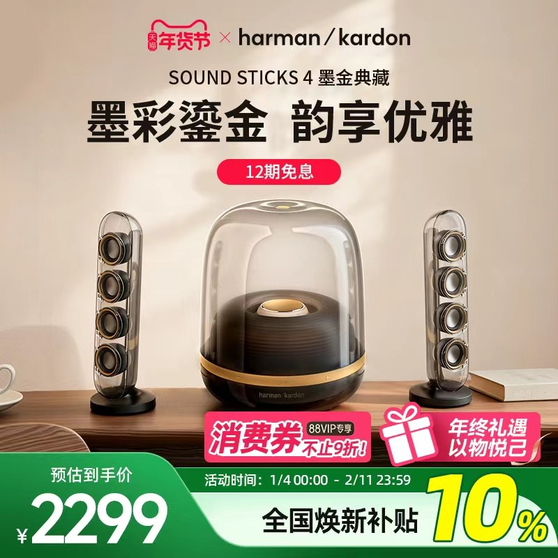 【全国补贴10%】哈曼卡顿水晶4墨金音乐蓝牙音箱家用礼物电脑音响