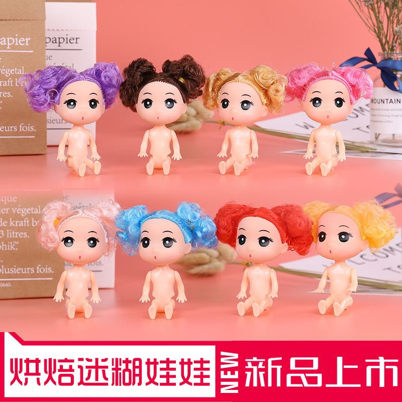 9cm迷糊娃娃 泡泡浴蛋糕烘焙装饰裸娃身丝网花体手工串珠玩具