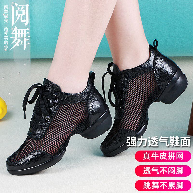 舞蹈鞋2023春秋冬季新款广场舞鞋女软底水兵舞黑色网面透气跳舞鞋