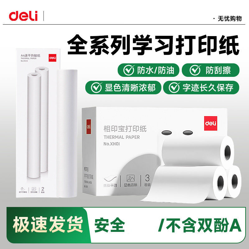 得力打印纸适配2寸/3寸/A4学习打印机热敏不干胶卷纸折叠纸速干浓郁显色清晰X1/X3/X5/X8错题机喵喵机专用