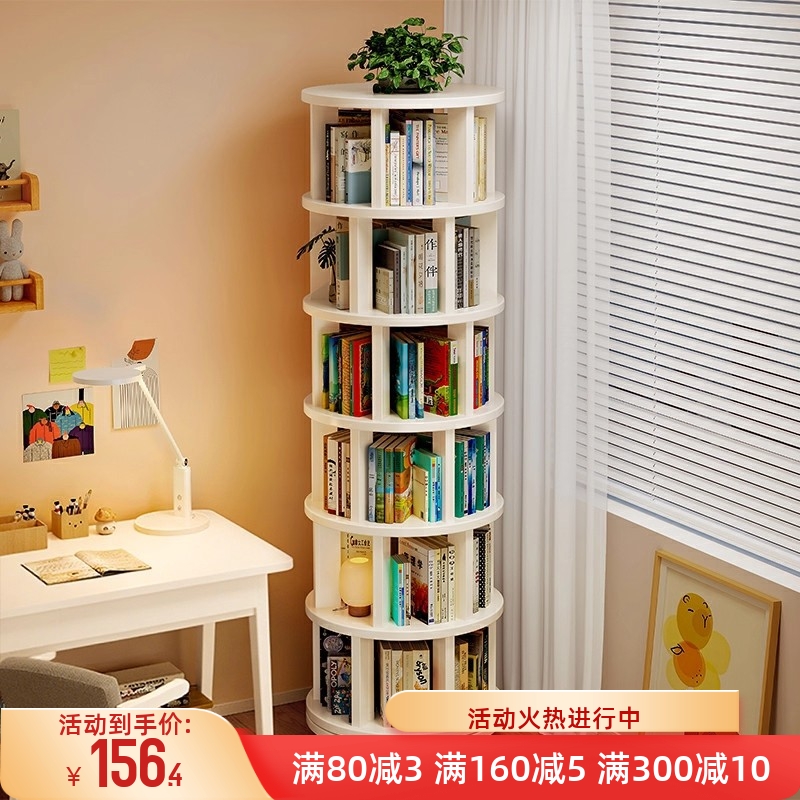 旋转书架落地置物架书柜子家用储物柜儿童客厅立架简易实木展示架