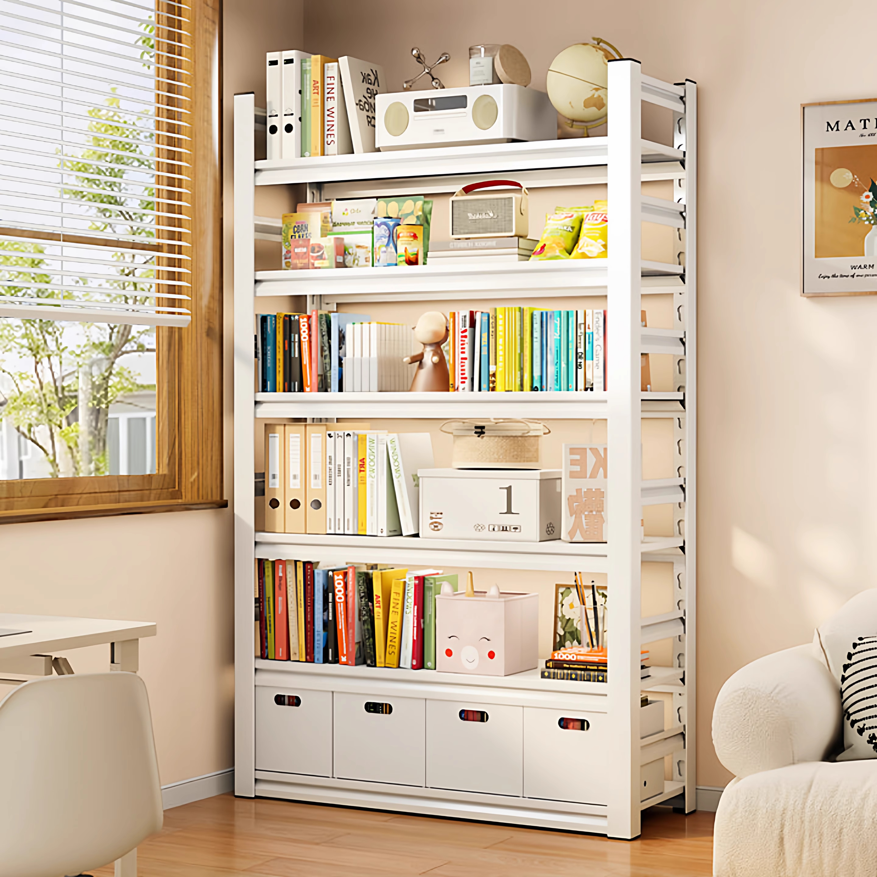 加厚钢制书架落地置物架多层收纳架客厅靠墙一体储物柜儿童书柜子
