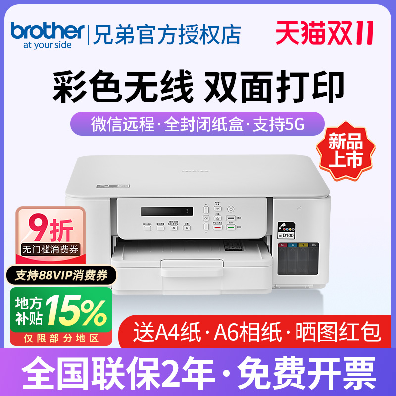 兄弟自动双面打印机彩色喷墨无线手机wifi打印复印扫描一体机家用小型学生作业照片办公A4墨仓
