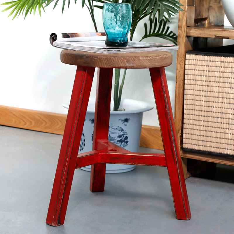 田园做旧木凳子实木圆凳高板凳老榆木餐凳老门板简约现代换鞋凳子