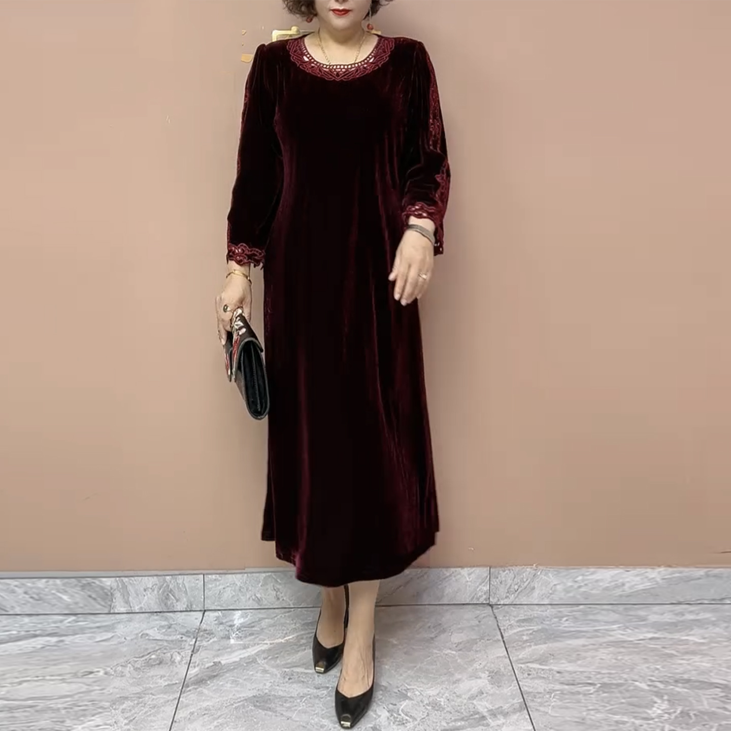 高档贵夫人丝绒连衣裙秋冬新款50-60岁妈妈轻奢国风过膝长款旗袍
