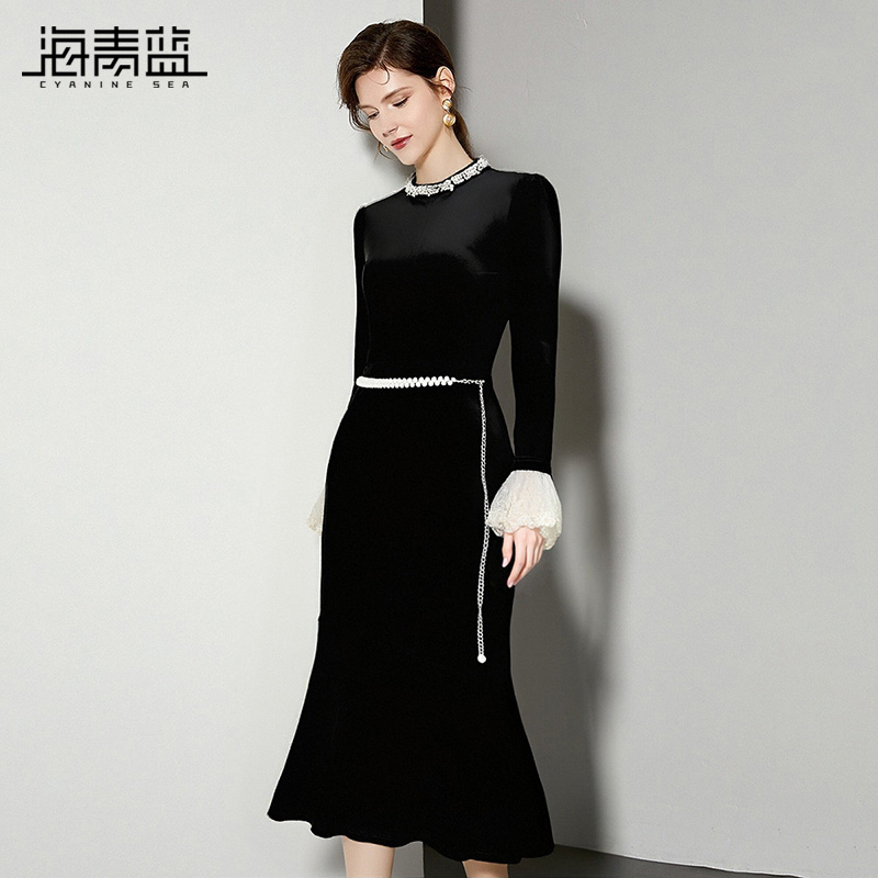 法式复古欧洲站丝绒连衣裙秋冬千金感穿搭名媛气质修身显瘦鱼尾裙
